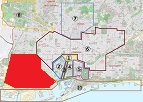 | スペイン広場に旧闘牛場がありますが、丸いショッピング・センターの屋上には、入りやすいレストランが7軒あります:魚介類、カタルーニャ料理、お肉、イタリアン料理、日本料理などが食べられます。 |